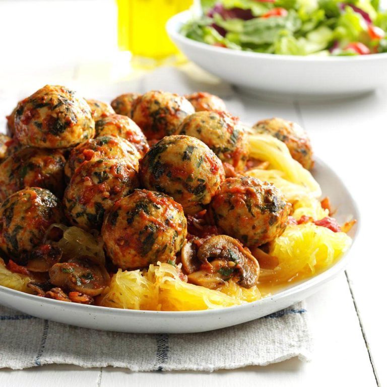 Acompanhadas de abóbora e molho de tomate com cogumelos, essas almôndegas tenras são ótimas quando se trata de excelente sabor. - Diane Nemitz, Ludington, Michigan