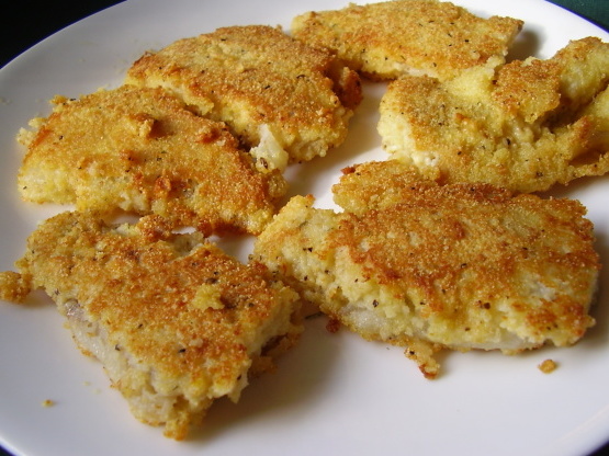 Não há nada extravagante sobre isso, mas se você está procurando por um revestimento crocante sem fritar isso é tão bom quanto possível, se sua frigideira não é grande o suficiente para armazenar todos os peixes, então transfira para uma assadeira que tenha foi revestido com óleo, apenas pão ralado seco ou o revestimento não irá aderir ao peixe --- o tempo de cozimento é apenas para forno, se desejado, qualquer filé de peixe grande pode ser substituído para o bacalhau, todo tempero meu ser ajustado a gosto