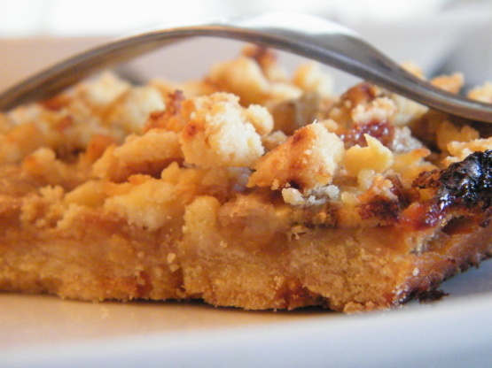 Espalhe a maçã por cima da base assada. Descasque e corte rapidamente a banana. Organize as fatias de frutas sobre a maçã. Em uma tigela pequena, misture a massa de 0,25 com as amêndoas moídas, a canela, a casca de limão e as passas (se você Mexa com as mãos até que fiquem quebradiças, depois cubra as fatias de banana. Bata por cerca de 25 a 30 minutos a mais, até dourar e crocante.