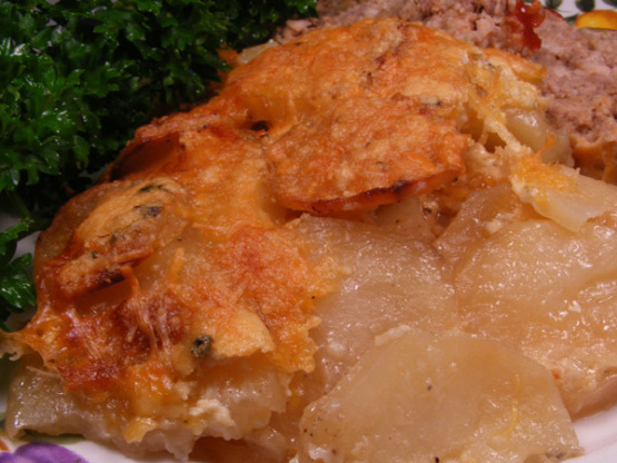 Levar leite para ferver em panela média.Despeje o leite sobre as batatas (leite não vai cobrir completamente as batatas) .Cobrir a assadeira firmemente com papel alumínio.Leve 45 minutos.Use o prato (no prato pode parecer coalhado); polvilhe batatas com mistura de queijo reservada.Bake descoberto até que as batatas estejam macias e o queijo esteja dourado dourado profundo, cerca de 45 minutos a mais (pode ser preparado 2 horas à frente.Deixe repousar à temperatura ambiente.Cubra e reaquecimento em forno a 375 ° F cerca de 20 minutos .) Retire do forno; deixe repousar 15 minutos antes de servir.