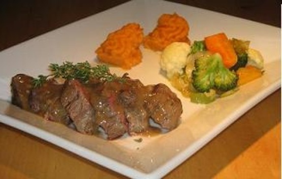 Para servir bifes fatia em tiras e organizar no prato e despeje o molho mais.