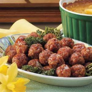 Escorra as bolas de presunto; regue com uma mistura de xarope; lance para casaco. Asse por mais 10 minutos ou até ficarem glaceadas.