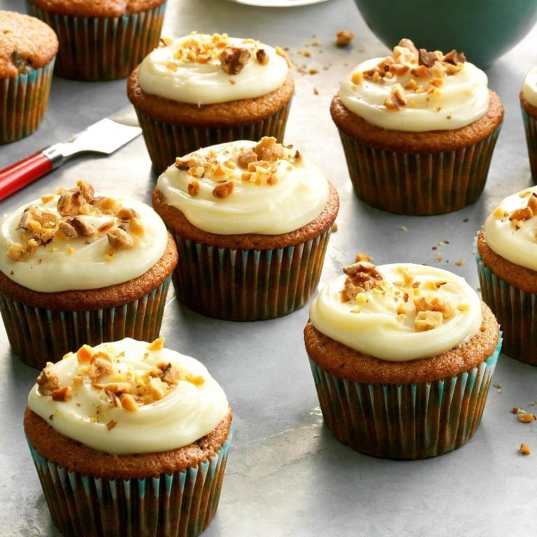 Para glacê, bata a manteiga e o cream cheese até ficar homogêneo. Bata na baunilha. Adicione gradualmente o açúcar de confeiteiro. polvilhe com nozes.Refrigerar.