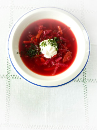 O borsch deve ser doce e azedo, com uma forte sopa de cor vermelho-beterraba.