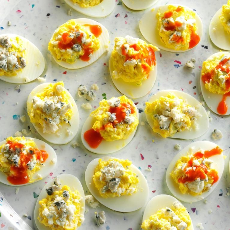 Minha filha Sara adora frango picante de búfalo e ovos cozidos, então combinei os dois.Faça um gole e relaxe um dia à frente para que os sabores se misturem. - Robin Spiers, Tampa, Flórida