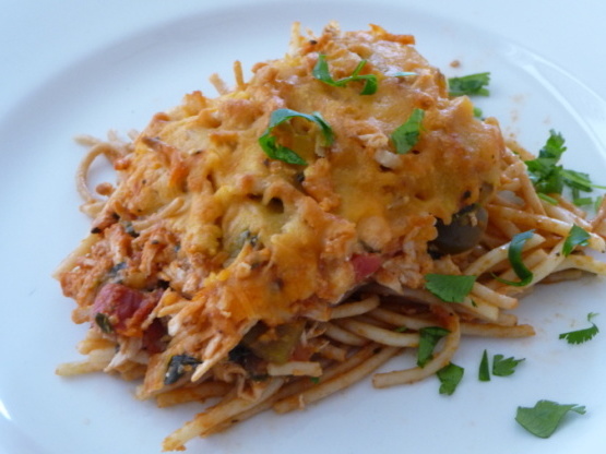 Caçarola de espaguete de frango queijo