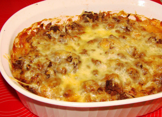 75 minFornocarne, alho, sal, molho de espaguete, queijo, nata, cebola, Macarrão, queijo,caçarola de carne moída italiana -