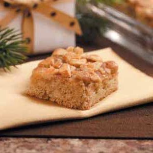 Em uma tigela pequena, misture os ingredientes da cobertura.Espalhe sobre o bolo.Broil por 1-2 minutos ou até borbulhante e levemente dourado.Corte em barras enquanto morna.Cool em uma cremalheira de fio.