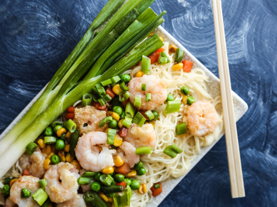 Aqueça o óleo na frigideira antiaderente grande e adicione camarão e gengibre; frite 8 minutos ou até o camarão ficar rosa.