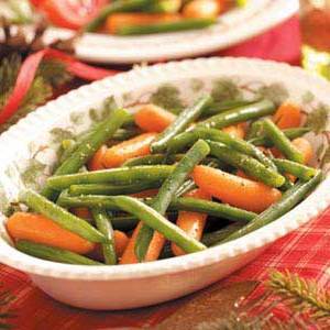 Cenouras e feijões verdes vitrificados
