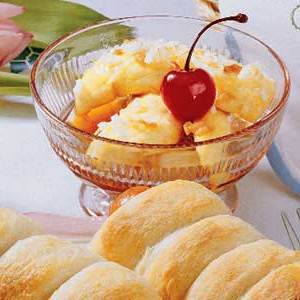 Asse, descoberto, a 350 ° por 10-12 minutos.Colher em pratos individuais; polvilhe com coco.Geleia com cerejas ou morangos, se desejar.