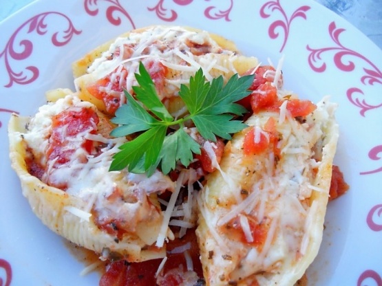 Ou deixe que as conchas não feridas esfriarem até à temperatura ambiente, cubra-as bem e congele até 2 meses. Para servir, descongele-as no frigorífico, depois asse como indicado e sirva com queijo parmesão ralado adicional.