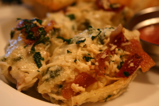 Conchas recheadas com pancetta crocante e espinafre
