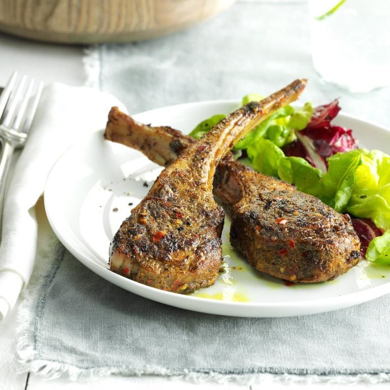 Uma das minhas refeições favoritas absolutas para comer em qualquer altura são costeletas de cordeiro! Minhas meninas, Hanna e Amani, adoram me ver fazendo minhas deliciosas costeletas, mas elas adoram comê-las ainda mais. - Nareman Dietz, Beverly Hills, Michigan