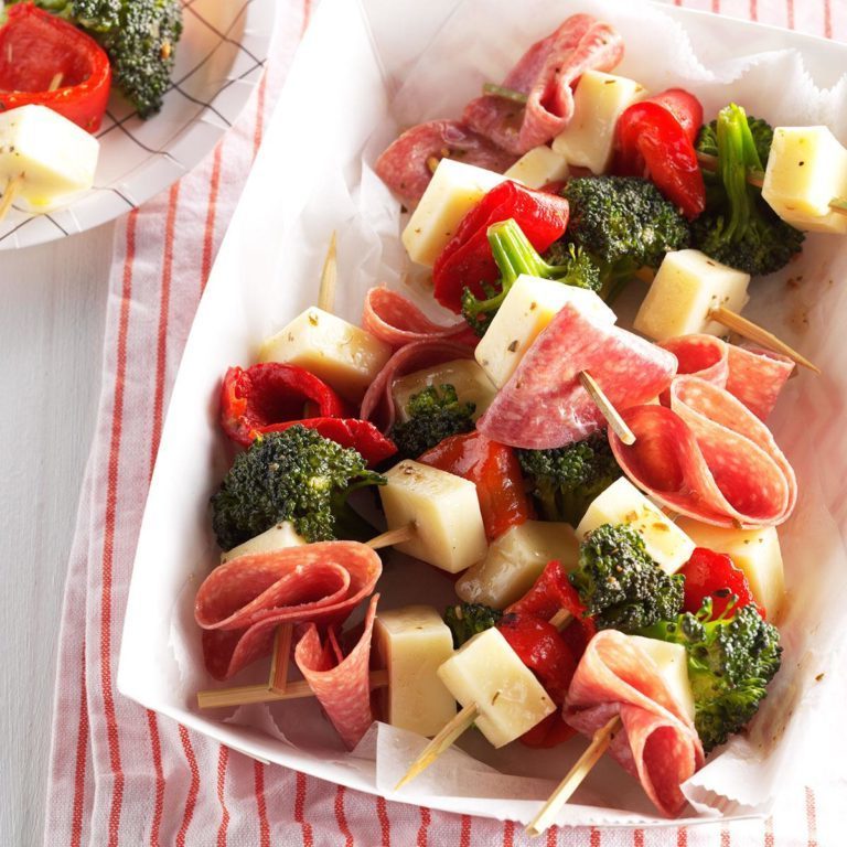 Queijo marinado, legumes e carne se juntam em um aperitivo fresco e divertido que é fácil de fazer. - Vikki Spengler, Ocala, Flórida