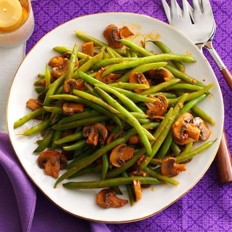 Umas férias na Hungria inspiraram esse lado saboroso do feijão verde com páprica e cogumelos. Sendo um vegetariano, saúdo estas ideias saborosas. - Sherry Johnston, Green Cove Springs, Flórida