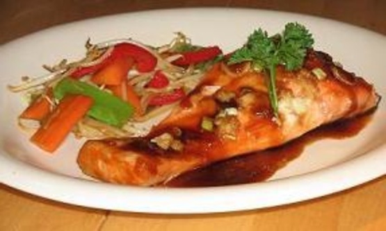 Para servir lugar filé na placa regue com molho hoisin da panela e sirva com legumes salteados ao lado.