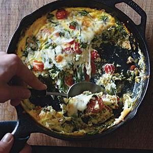 WHISK ovos e leite em tigela média até misturar; mexa em 1/4 de litro de queijo.Adicione aos ingredientes na frigideira; mexa apenas até misturar. Acompanhe com queijo restante.