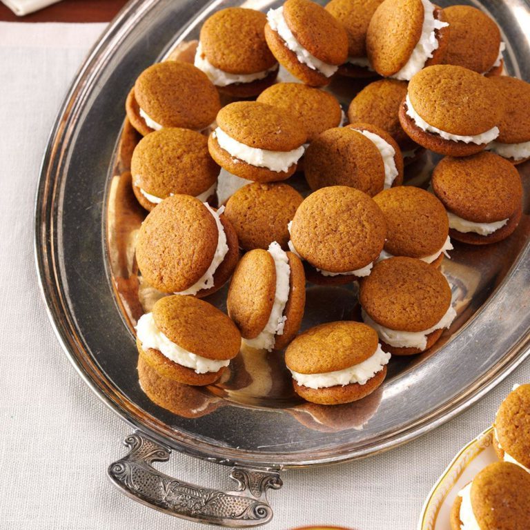 Quando o Natal está na esquina, adoramos biscoitos de gengibre e macarons. Combino os dois com um biscoito de gengibre temperado com recheio de coco. - Darlene Brenden, Salem, Oregon