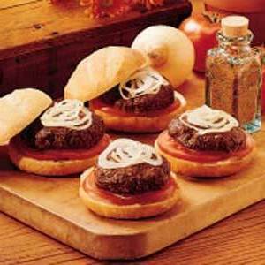 Sirva em pãezinhos; Cubra com cebolas refogadas, se desejar. Armazenar tempero restante misturar em um recipiente hermético.