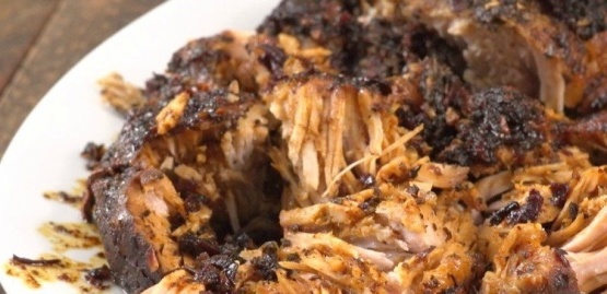 Retire o lombo de porco assado do fogão lento, reservando a carne.