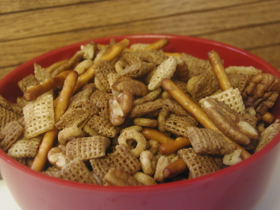 Existem 2 receitas já postadas para mix de festa que usam a panela de barro.Isso é diferente e o que eu fiz há muitos anos, perdeu a receita e finalmente encontrei novamente em todos os lugares um livro de receitas que eu tive para sempre - Melhor Loved Slow Cooker Recipes.Great para lanches ou férias dom dando.