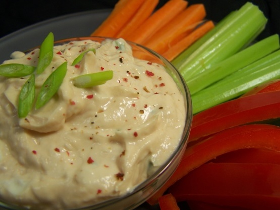 Como muitos de vocês, eu estou sempre experimentando com mergulhos, adicionando diferentes ervas e especiarias.Às vezes, porém, é bom voltar ao início.Este é o primeiro mergulho caseiro que já tive.Fácil de montar e as crianças parecem se divertir mas também com o rábano.Eles podem surpreendê-lo às vezes .:) Bom quando feito na hora, mas melhor se você deixar esfriar por algumas horas. O tempo de cozimento é um momento de frio.