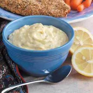 A maionese sem gordura misturada apenas com picles pareciam tão sem sabor, então comecei a experimentar e inventei minha própria receita de molho tártaro. Ela acrescenta muito sabor aos peixes, mas algumas calorias. - Kristen Flaherty, de South Portland, Maine