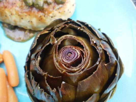 65 minAlcachofraAlcachofra, dentes de alho esquartejados, suco de limão, óleo, sal marinho, caldo,"sem confusões" alcachofras assadas fáceis