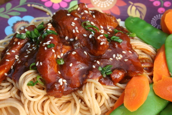 Combine todos os ingredientes, exceto massas e sementes de gergelim em panela de barro.Cobre; Cozinhe em fogo baixo por 5 horas ou até que as tiras de peru estejam cozidas.