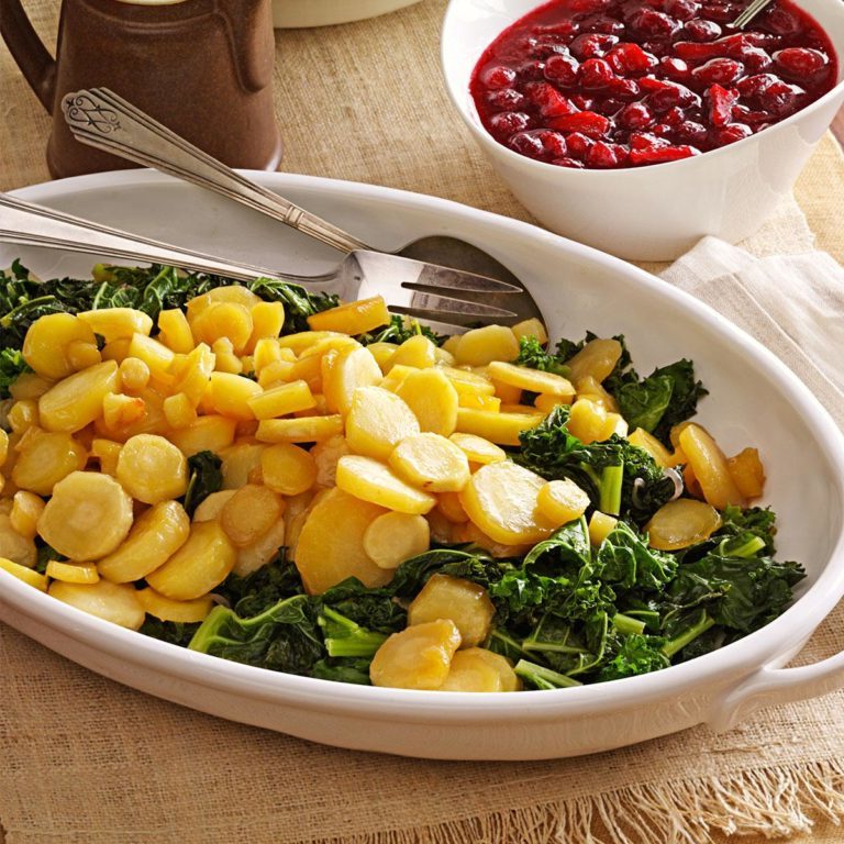 Para servir, coloque a couve em um prato grande; topo com parsnips.