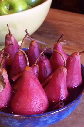 Deixe as pêras descansar por algumas horas ou, melhor ainda, durante a noite, para que elas possam absorver completamente os sabores do vinho. Elas vão dar uma linda cor de vermelhão.