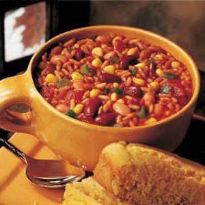 30 minReceitas da mulher do paísóleo, dentes de alho, Pimenta, Pimenta, cogumelo, cebola, tomates, tomates, Pimenta em pó, açúcar, cominho, feijões, abobrinha, milho, queijo,pimentão da colheita do jardim -