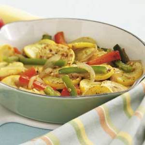 Anna Stodolak envia seu prato vegetariano rápido que certamente animar qualquer jantar.Anna usa squash amarelo fresco e pimentas de seu jardim de Volant, Pensilvânia.