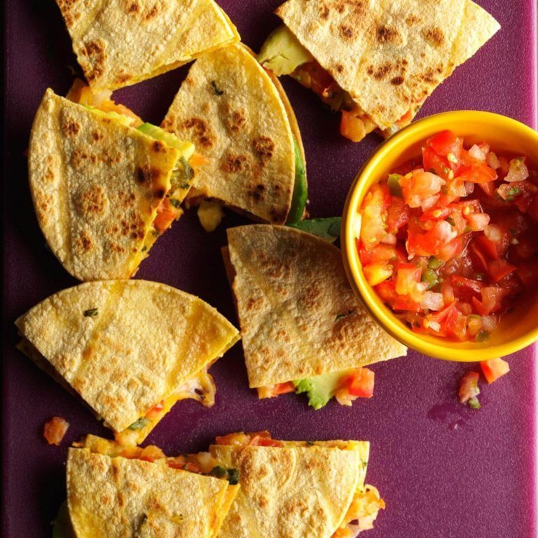 Cozinhe 3-4 minutos de cada lado ou até dourar levemente e queijo é derretido. Sirva com pico de gallo adicional.