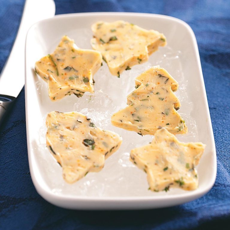 Adicione esta saborosa manteiga de ervas à sua propagação de férias para um adorável aspecto festivo. É fácil de fazer usando os seus cortadores de biscoitos de férias favoritos, e a sua forma única é a certeza de desencadear conversas.