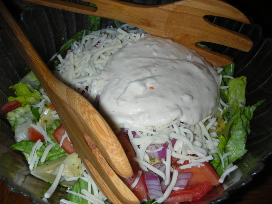 Esta salada é rica e muito recheio e deve ser servida como uma refeição principal.O molho faz cerca de uma tigela com uma capacidade de 3/8 litro contendo, mas pode ser facilmente duplicado.Planejamento à frente o curativo precisa relaxar por um par de horas antes usando, o tempo de preparação inclui tempo de resfriamento para o molho.Sinta-se livre para adicionar outros ingredientes à salada.