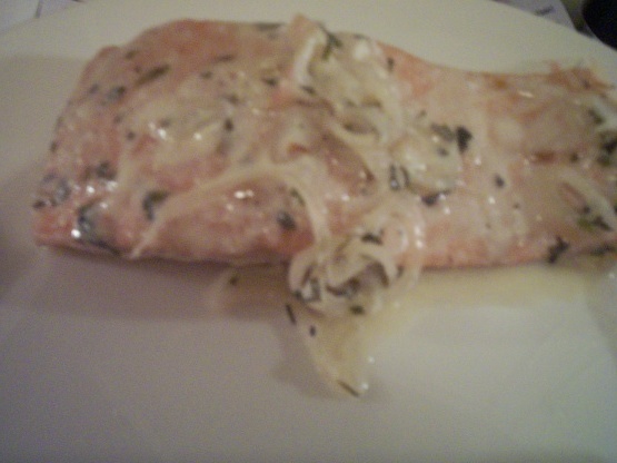 Coloque metade do molho no prato aquecido; cubra com filé de salmão e decore com polvilha de estragão muito leve.