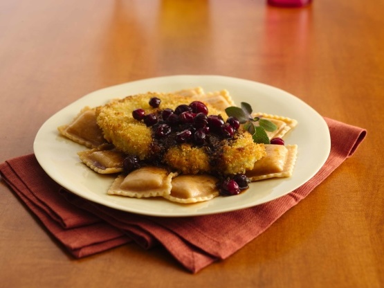 To make the sauce, add butter to sauté pan and place over medium-high heat.At the same time, drop ravioli into the boiling water.When butter begins to turn light brown, add fresh sage.Stir for a few seconds; then add cranberries, and sauté until skins begin to burst.Add molasses, balsamic vinegar, and broth, scraping bottom of the pan to pick up all the flavor of the turkey.Simmer until cranberries are soft and the sauce coats the back of a spoon, about 12-15 minutes.Season to taste with salt and pepper.Be sure to taste sauce for seasoning before you pour it over the turkey!