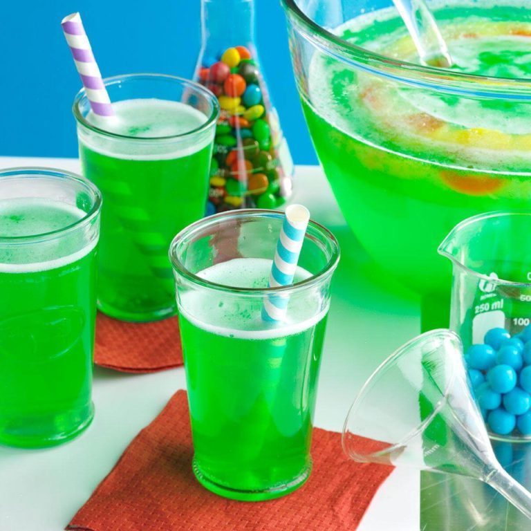 Em uma festa de Halloween, quanto mais assustadora for a comida, melhor! Eu gosto de enfiar minhocas de goma em um anel de gelo quando faço este grande soco verde. - Michelle Thomas, Bangor, Maine