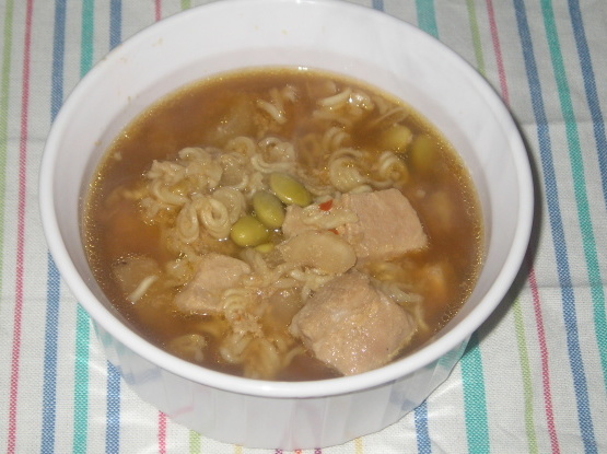 Sopa de porco e edamame