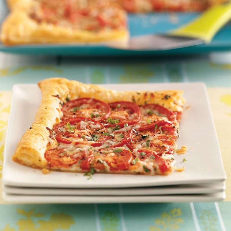 Desdobre a folha de massa em uma superfície levemente enfarinhada. Role em um quadrado de 12 polegadas; transferir para uma assadeira forrada de papel de pergaminho.Forneça com um garfo